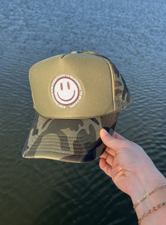 Camo Smiley Face Trucker Hat