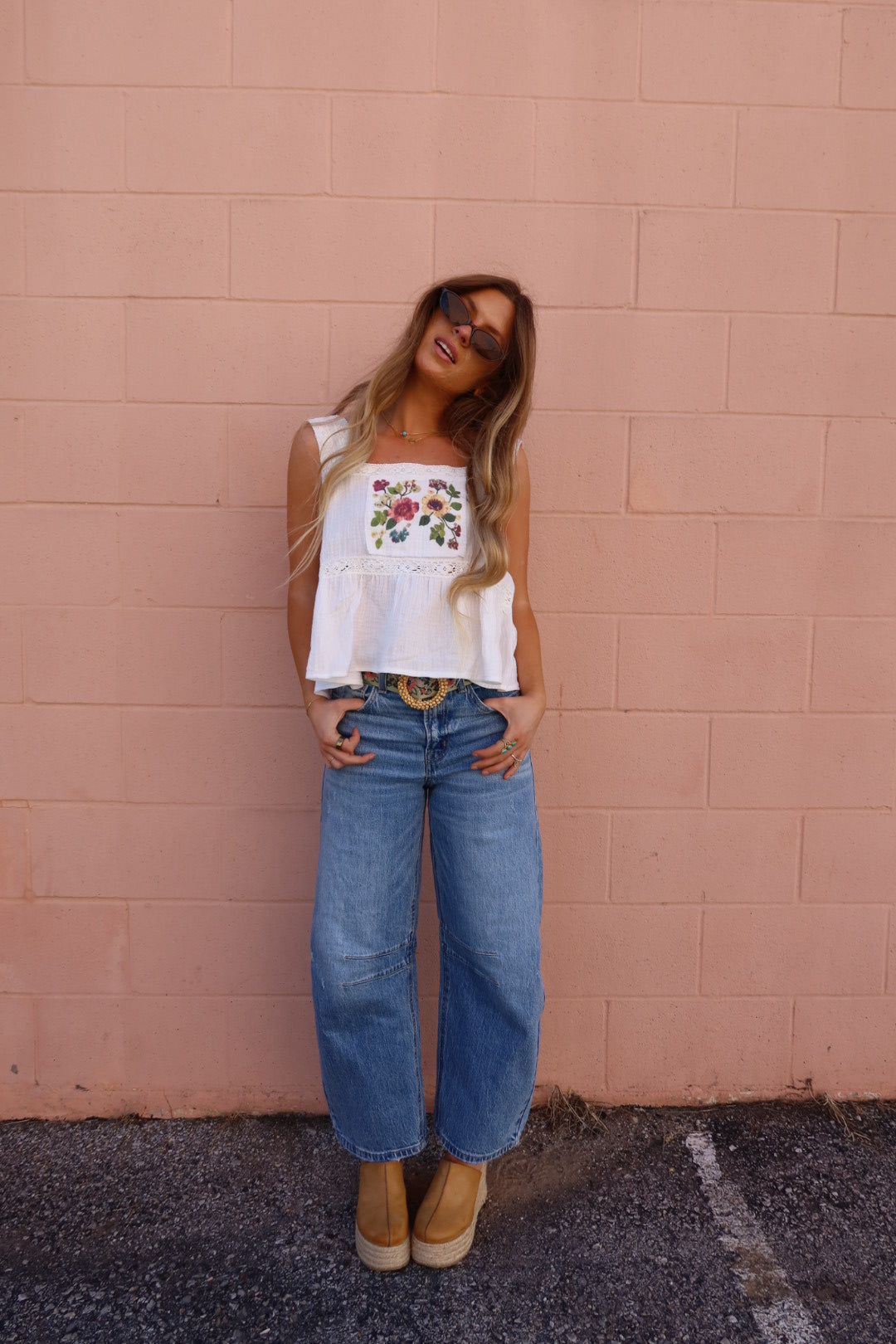 Introducing the Andi Babydoll Tank—your new go-to for effortless charm. Crafted from luxuriously soft double cotton gauze, this off-white beauty features a delicate floral print paired with an eye-catching outseamed self-patch floral detail. The sweet square neckline adds just the right amount of playful elegance, making it perfect for layering or wearing solo. Light, breathable, and undeniably cute, this tank is ready for whatever your day brings.