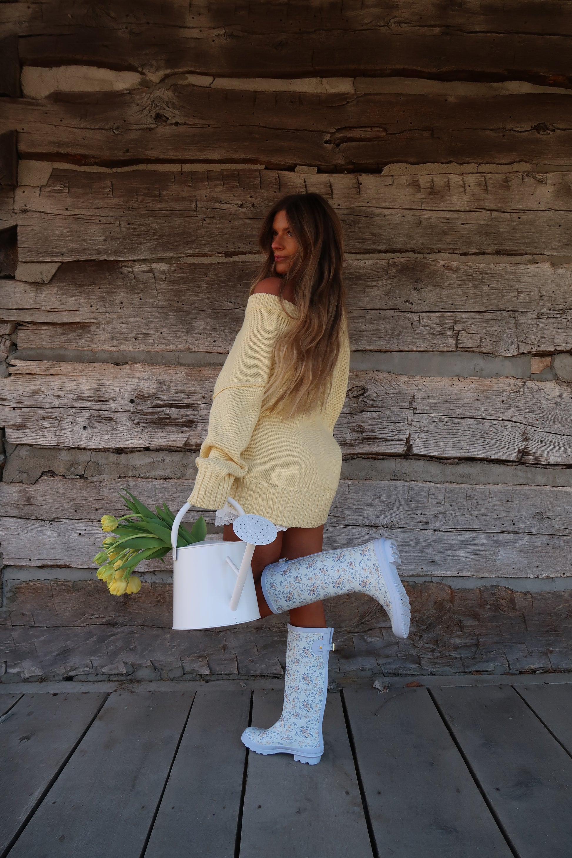 Keep little feet dry and stylish with the Blossom Blu Rainboot. Crafted from durable rubber, these charming boots feature a delicate floral pattern that adds a cheerful touch to rainy days. The soft baby blue base pairs beautifully with blooming florals, making puddle-jumping more fun. Perfect for outdoor adventures, these waterproof boots provide reliable protection while celebrating nature's beauty. An essential addition to any child's seasonal wardrobe.