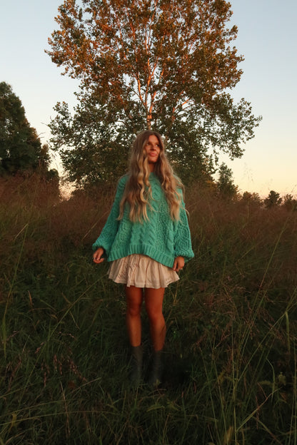 Boone Teal Cable Knit Sweater