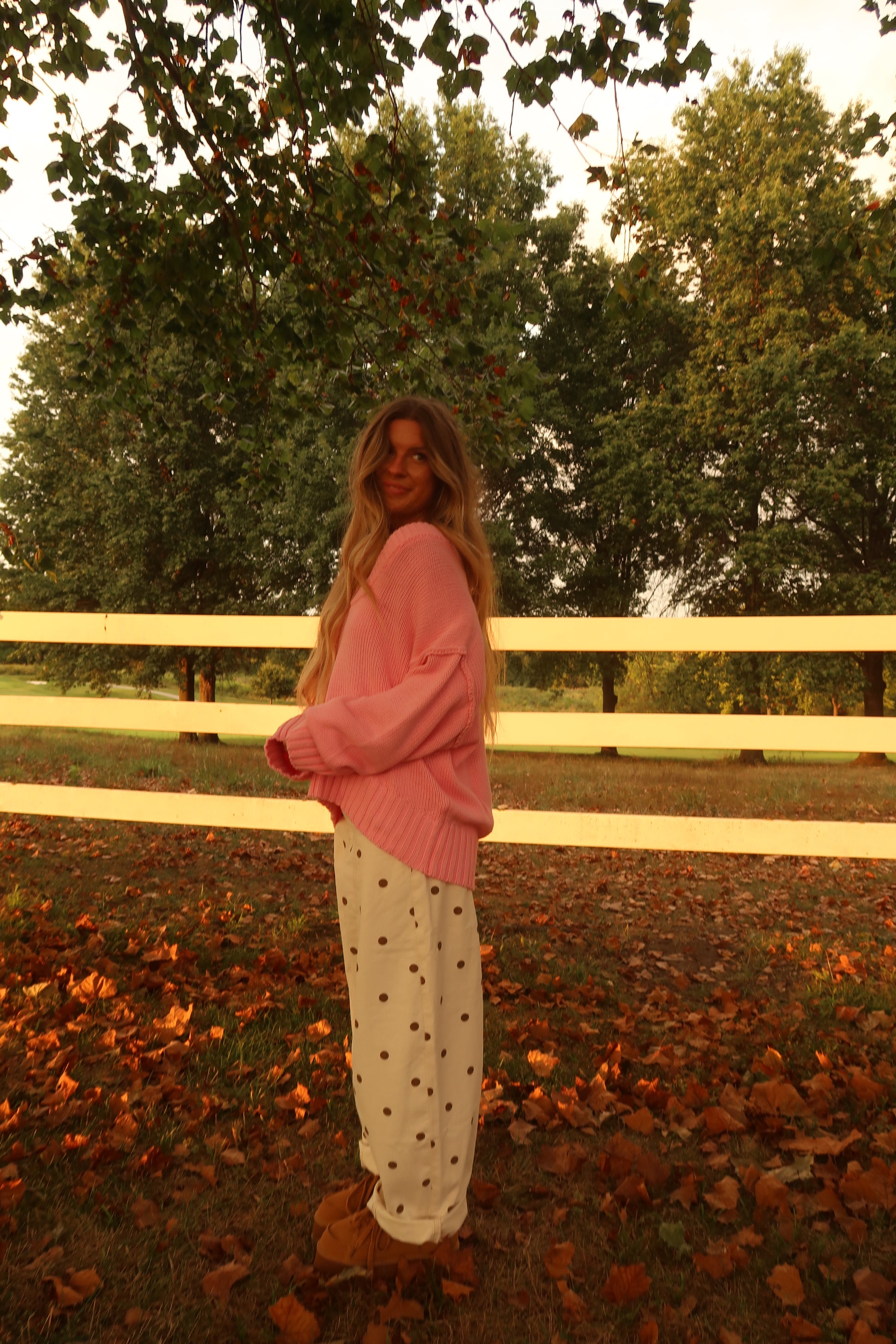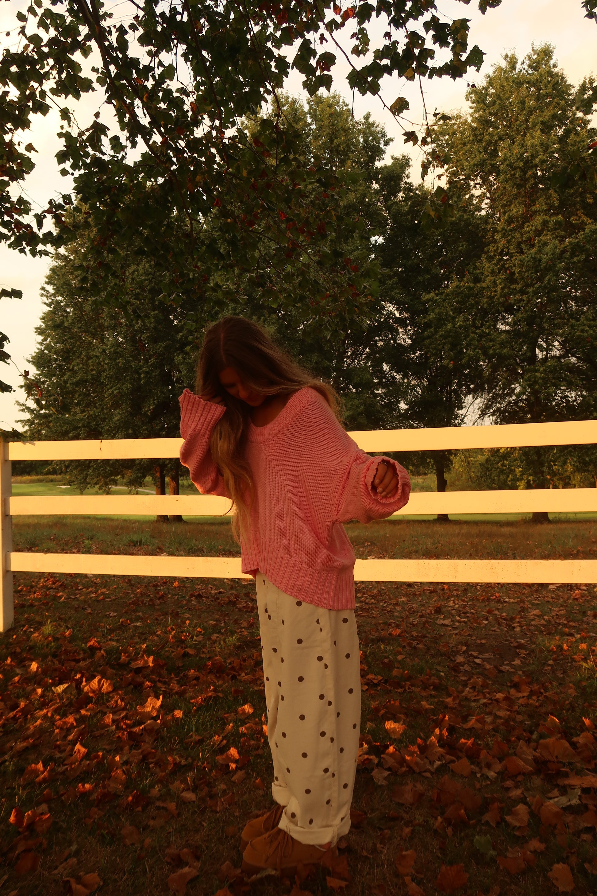 The Bubble Sweater offers a playful, slouchy fit with a wide neckline that effortlessly drapes off the shoulder. Crafted from a soft bubble gum knit, it’s perfect for cozy days when you want to feel relaxed yet stylish. Embrace casual comfort with a touch of whimsy.