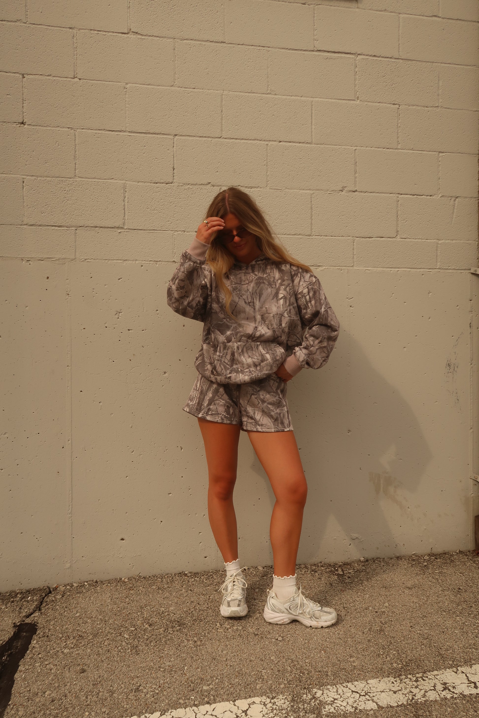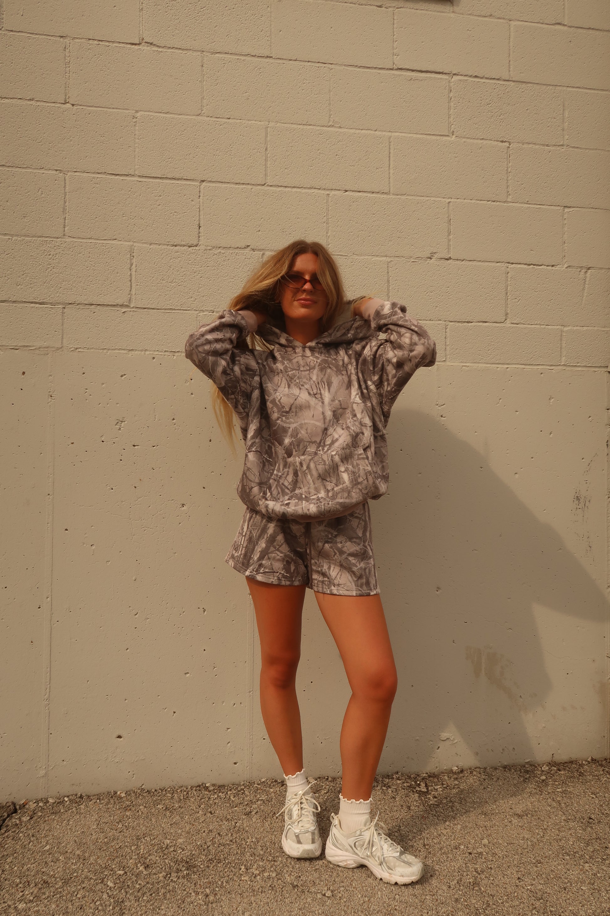 Stay cozy and cool in the Camo Cloud Hoodie, featuring soft fleece French terry fabric with an exclusive camo print. Its oversized fit adds an extra layer of comfy style, perfect for lounging or casual outings. Don’t forget to grab the matching shorts to complete your laid-back look!