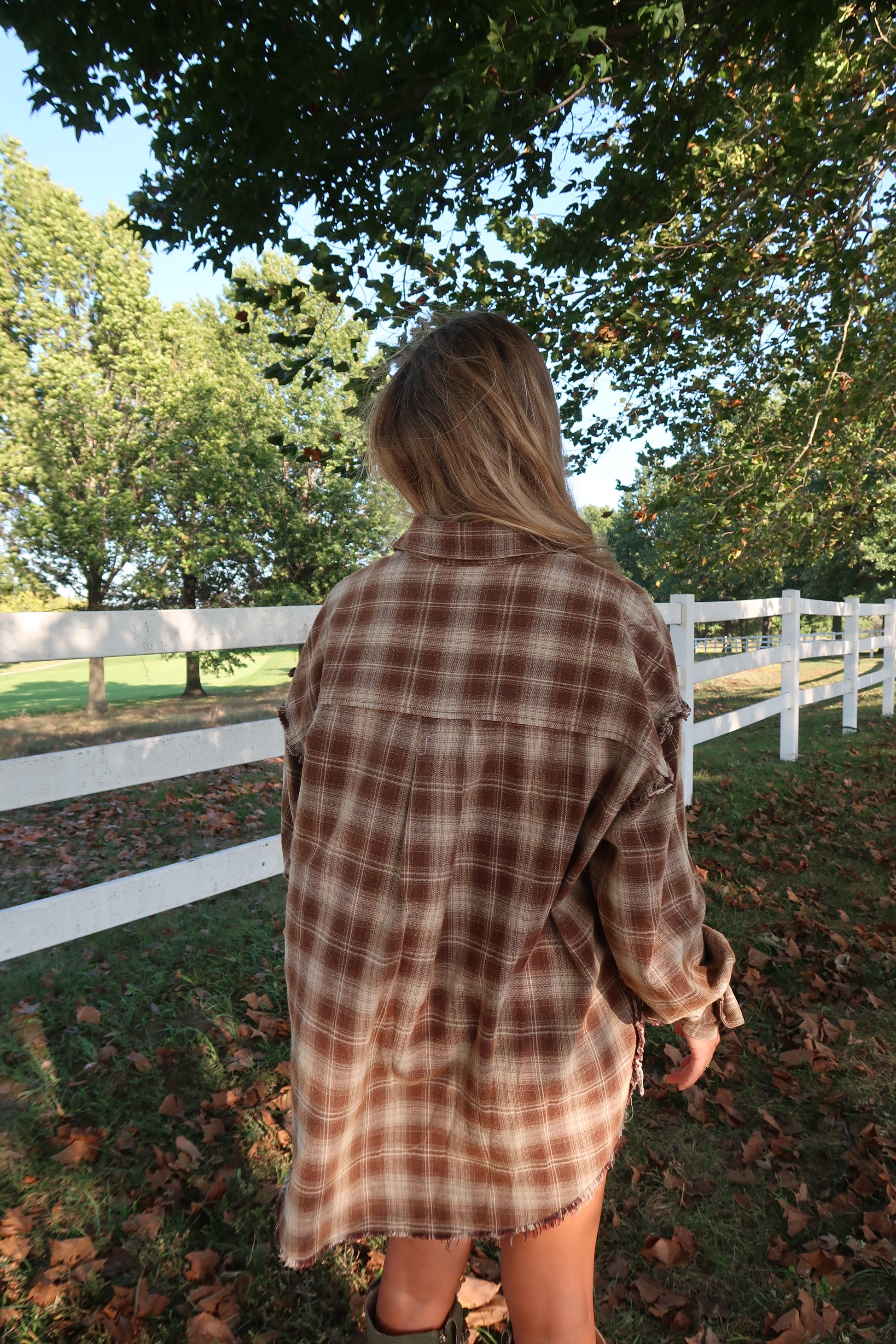 Stay cozy and stylish in our Cider Oversized Flannel! This brown and cream flannel features a frayed hem and an oversized fit for ultimate comfort. Perfect for a chilly day, this flannel will keep you warm and looking good.