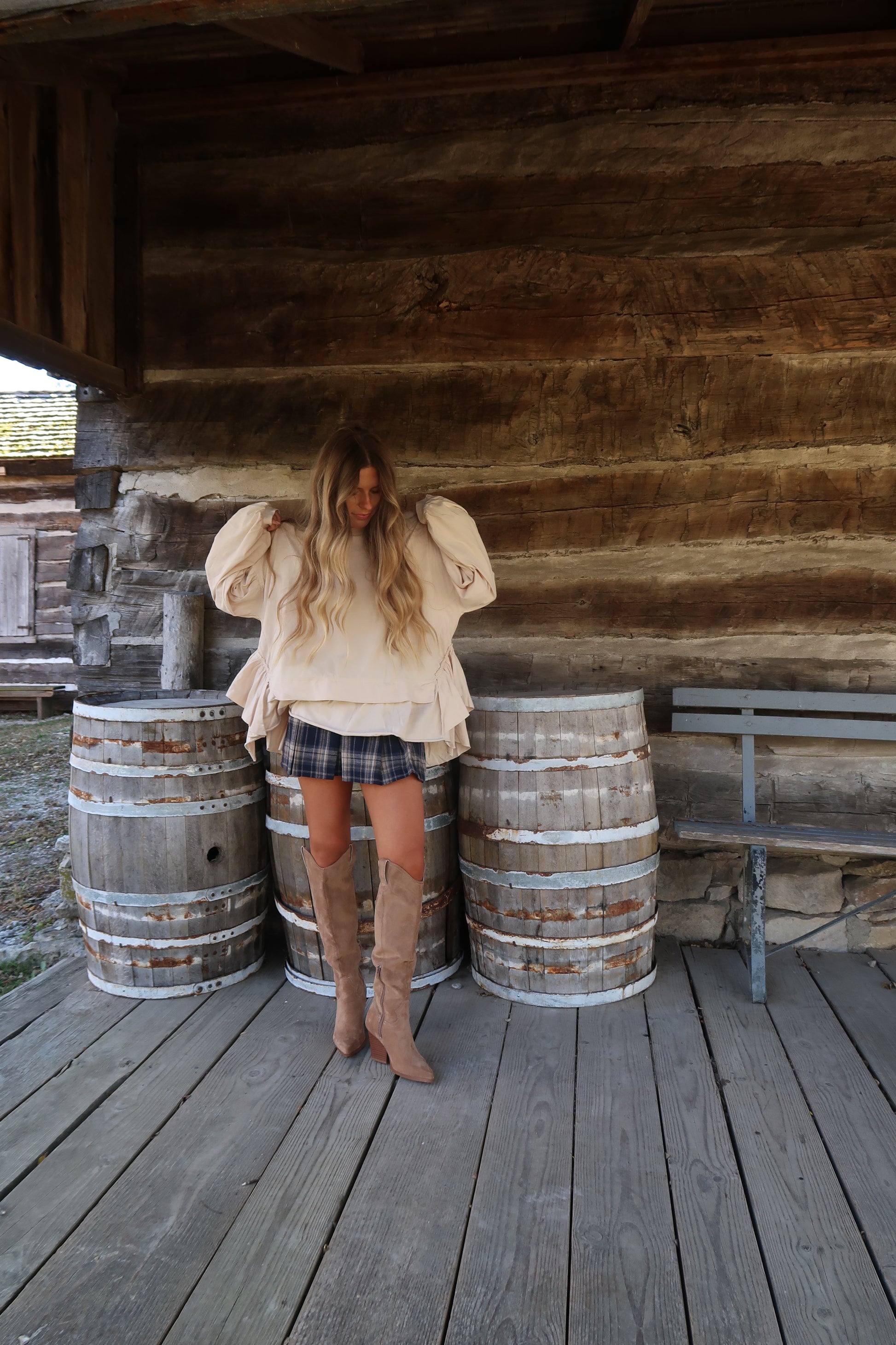 Embrace effortless charm with this Creamy Ruffle Babydoll Top. Its oversized fit offers cozy comfort, while the delicate cream ruffle hem adds a playful touch. Perfect for a breezy, feminine look that moves with you all day long.