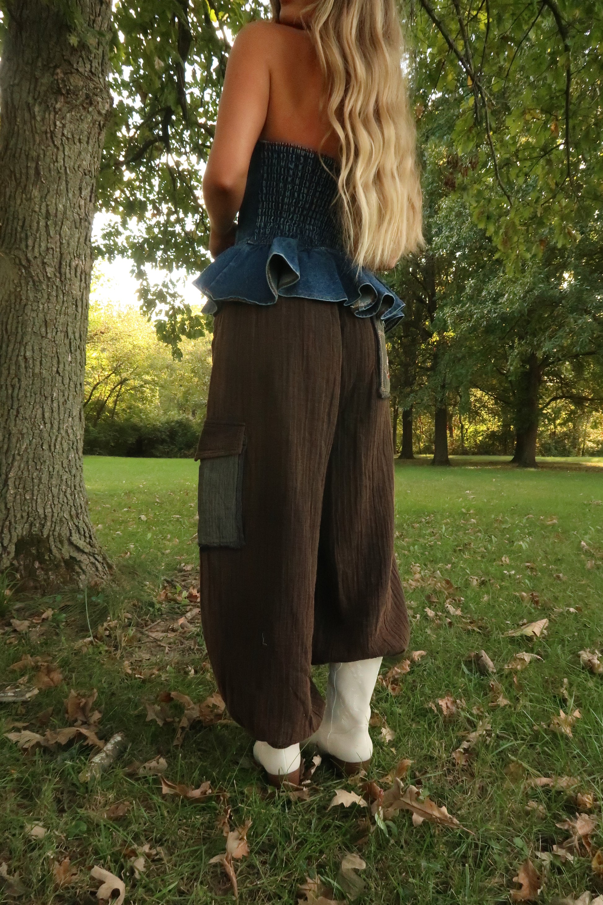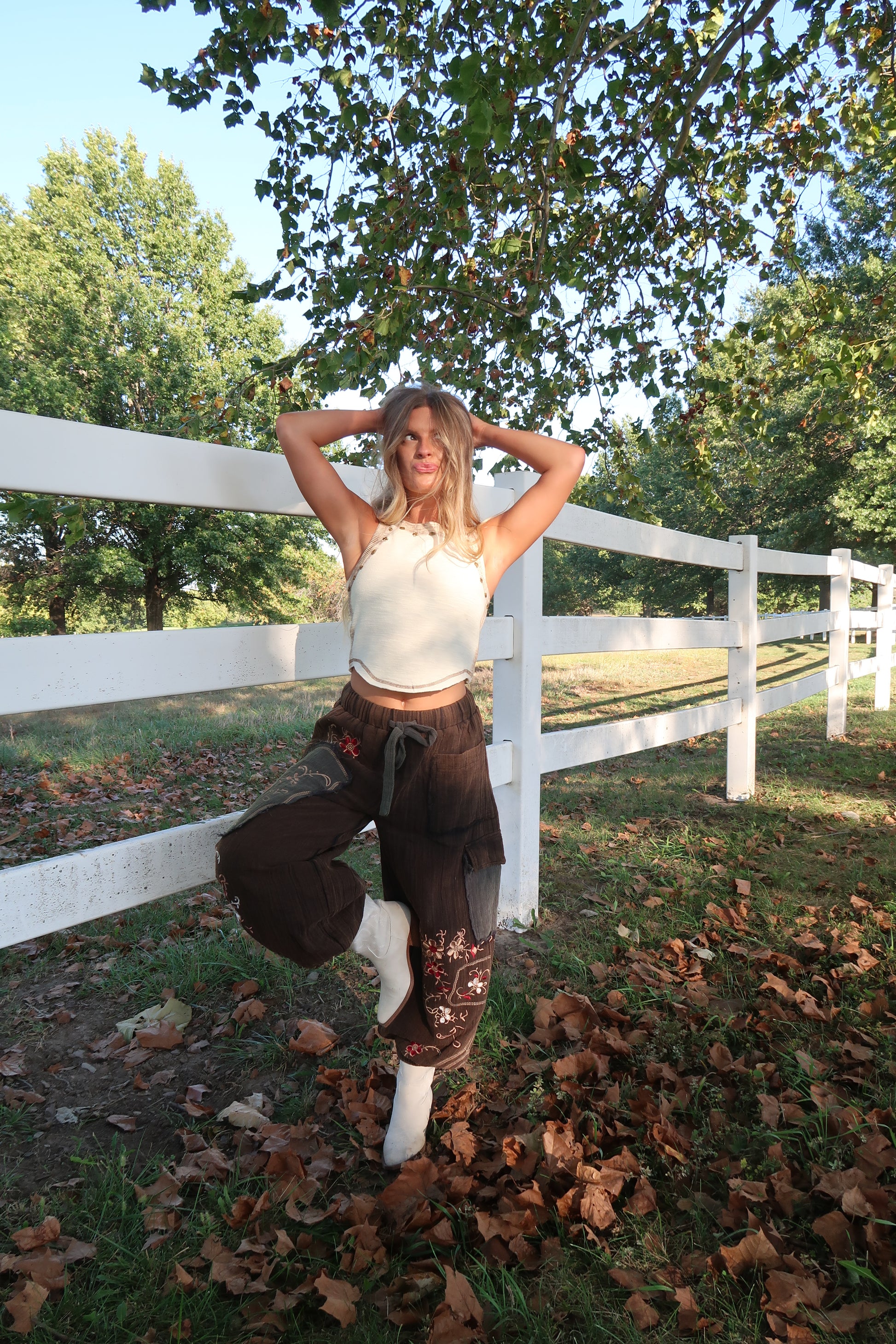 Forget sweatpants, these Falling for you joggers are the ultimate in comfort and style! Made with dark brown mineral washed cotton, featuring beautiful embroidered floral details. And with an elastic adjustable tie string waist, you'll have the perfect fit every time. It's time to upgrade your loungewear game!