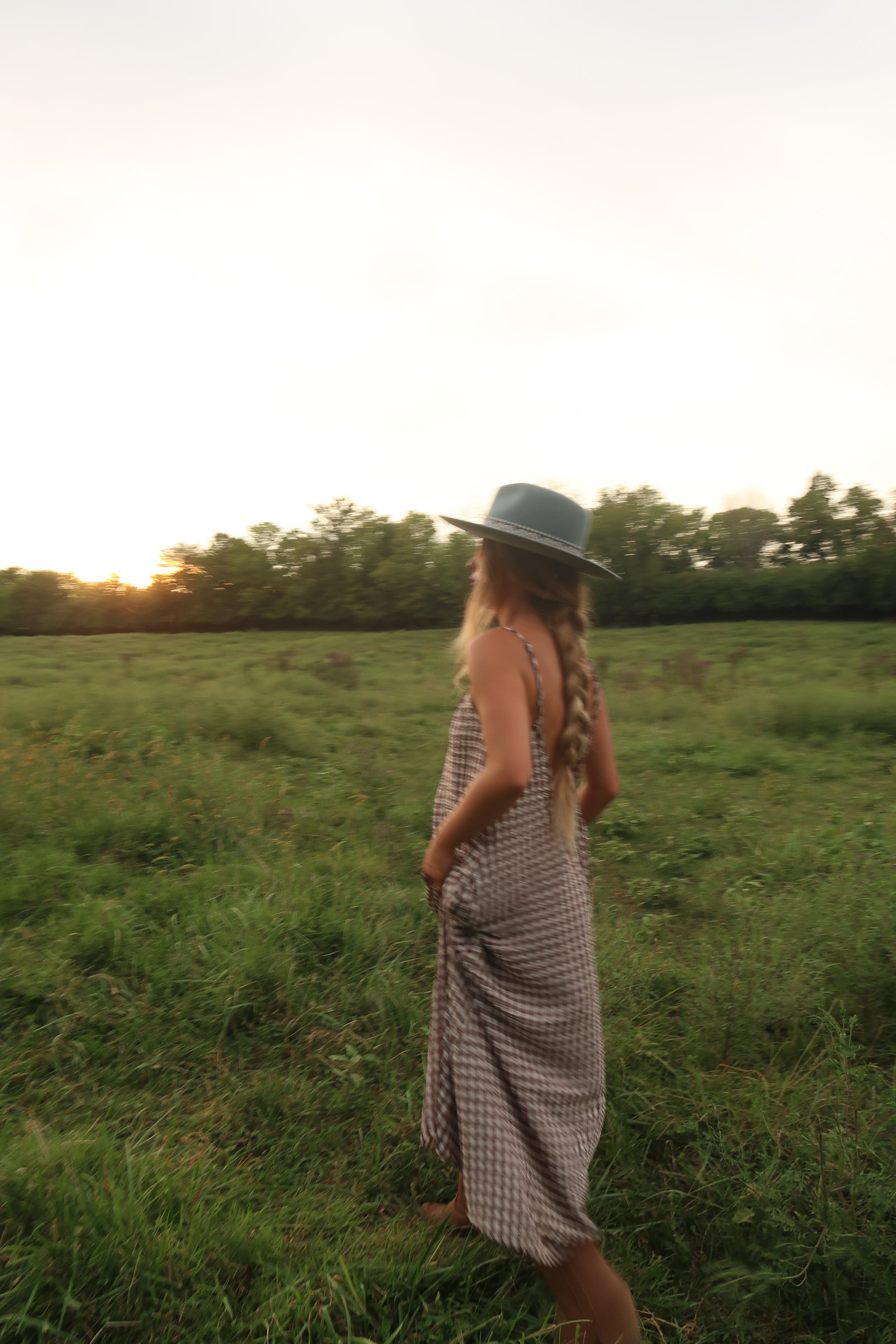 Embrace effortless charm in the Fireside Gingham Maxi Dress. This brown gingham beauty features adjustable straps and a low back for a customized fit with a flirty edge. Practical pockets add a touch of ease, perfect for keeping essentials close during your sunny adventures. Let this dress be your go-to for playful days and cozy fireside evenings.