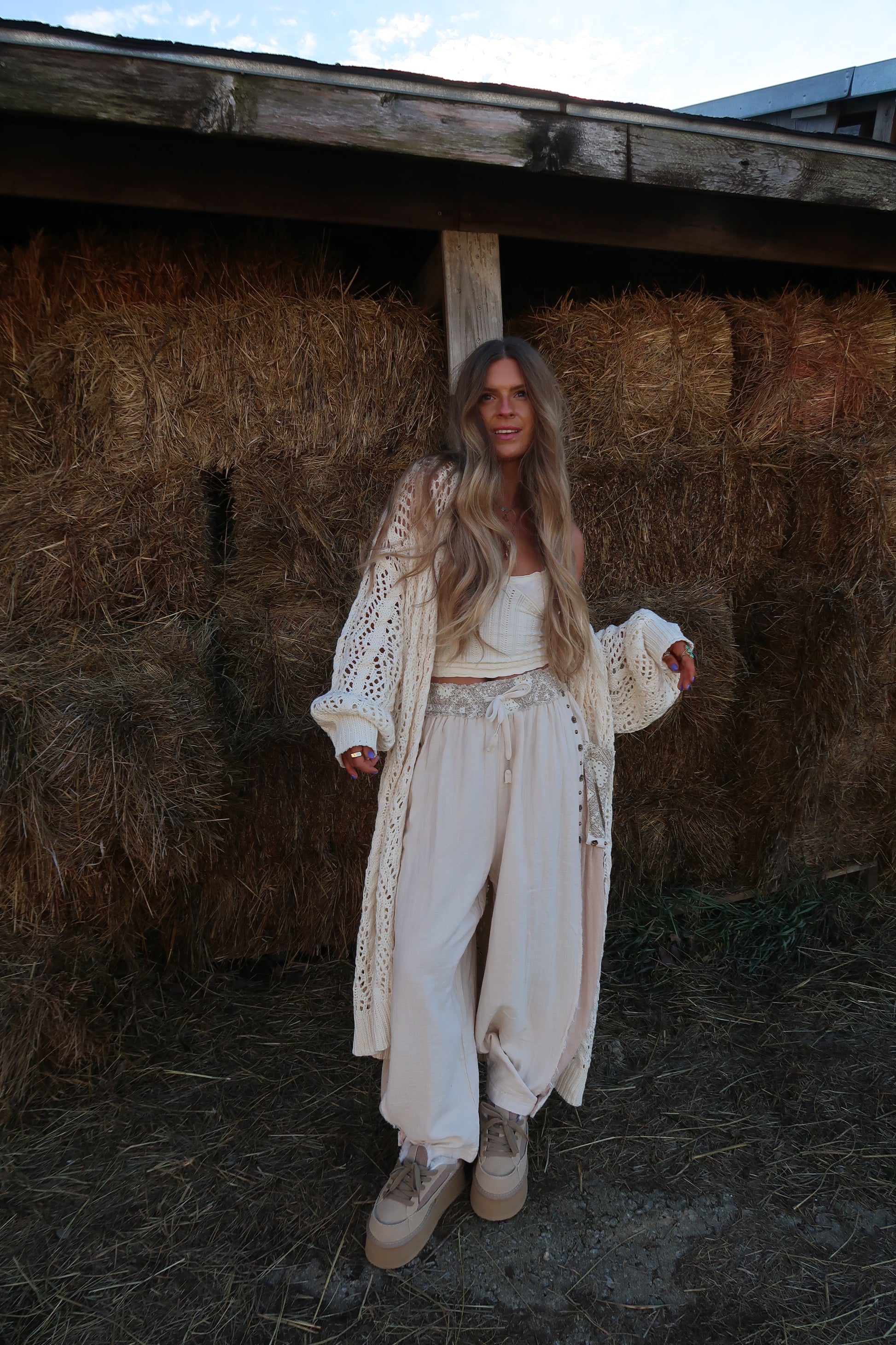 Wrap yourself in ultimate coziness with the Golden Hour Crochet Long Cardi. This cream Crochet, floor-length cardigan feels so soft you'll never want to take it off. Perfect for casual days when comfort is key, it’s your new go-to for snuggling up or adding a relaxed, stylish layer to any outfit. Stay cozy, feel playful!