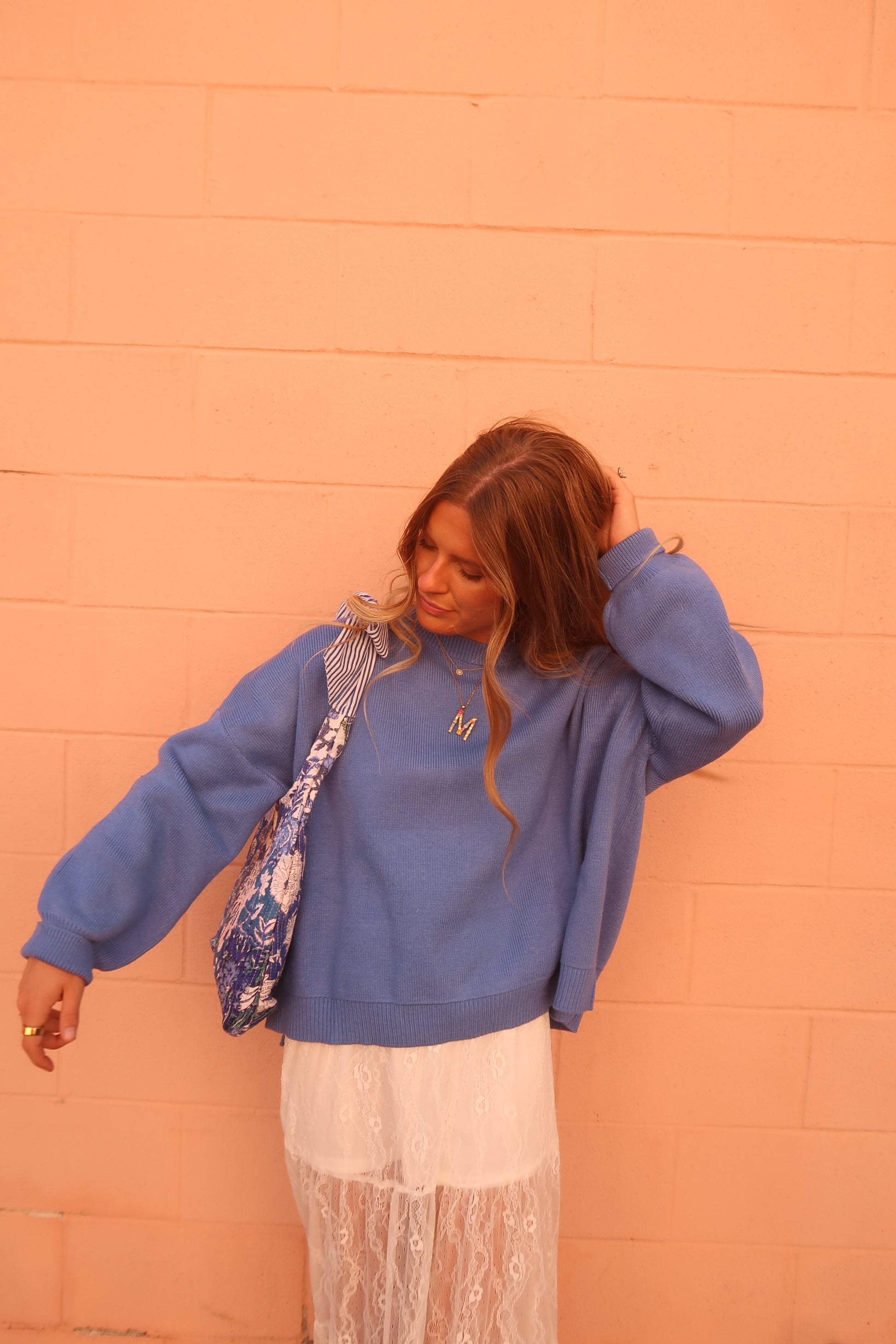 Our Isla Quilted Bow Purse bright bold blue floral patchwork print with a beautiful blue stripe contrast inside. Each bag is handmade in India and no two are the same! Each piece of the Quilted Club are designed by and for MJ. All of our quilted bags are lightweight but structured. The tote bag has a pocket on the inside.