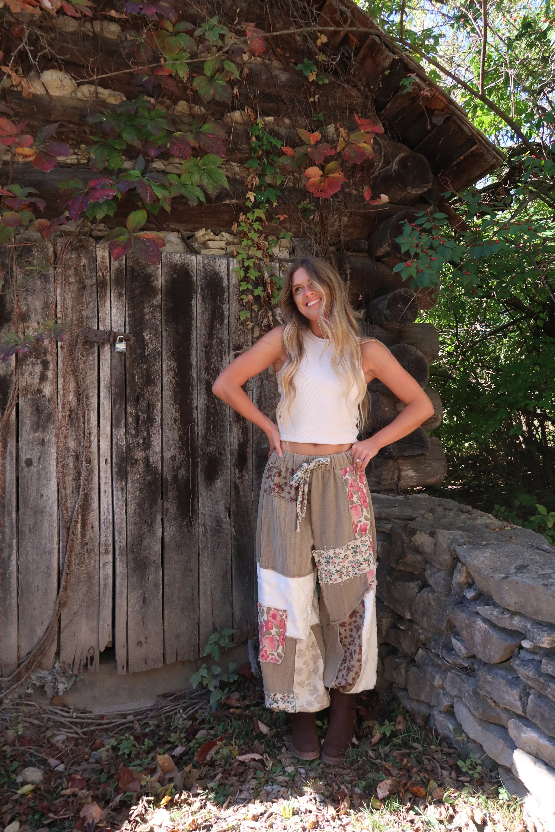 Meet your new favorite pants, the Thankful Jogger! Made of a dried herb cotton material, with lace and floral patchwork details and a lightweight feel, these joggers are both comfy and cute.