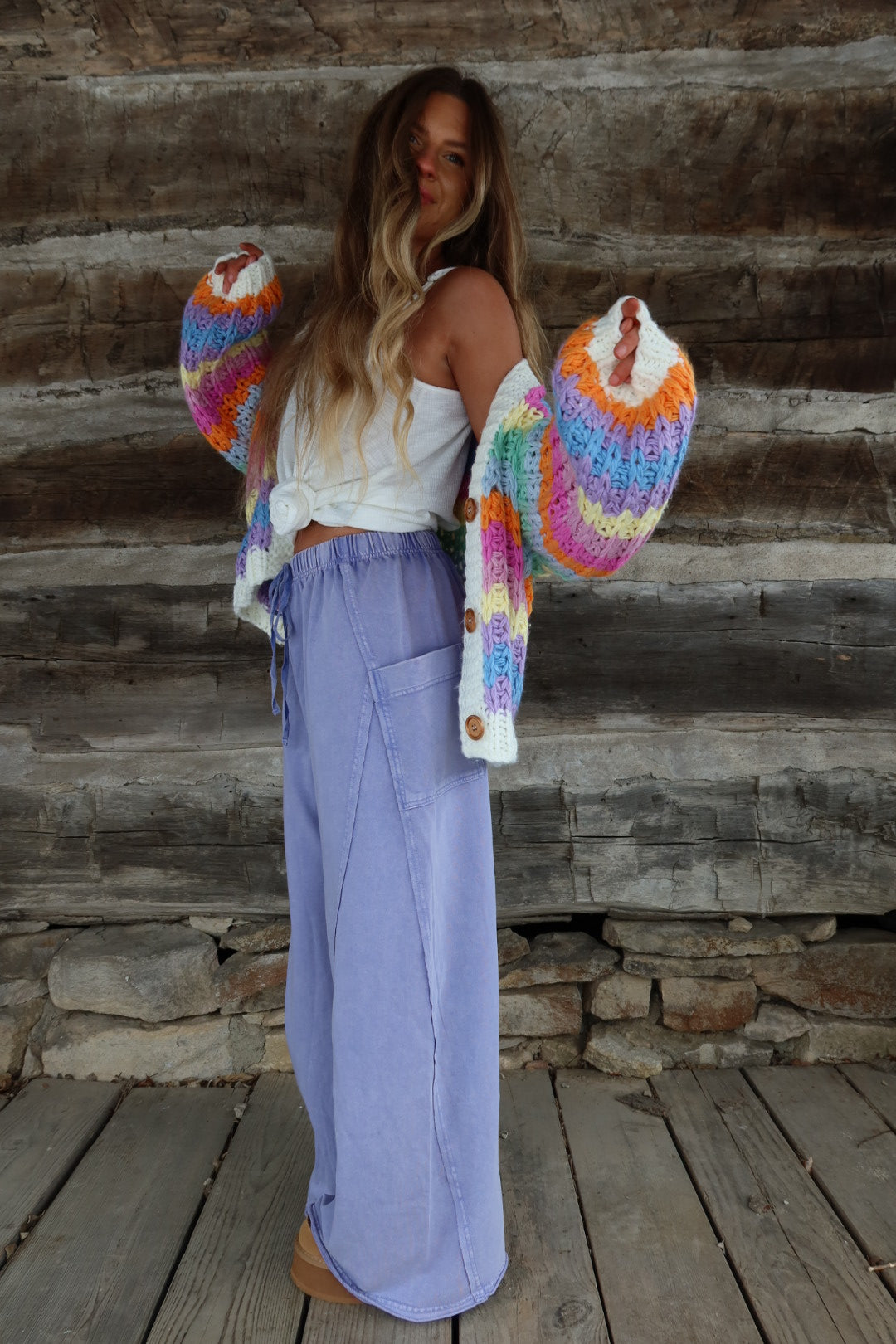Introducing your new fave bottoms - the Lilac Wide Leg Pant! In a mineral wash light purple/lilac color, these wide leg sweatpants are both comfy and cute, adding a playful twist to your wardrobe. Perfect for lounging or going out, the crop fit will keep you stylish and comfy all day.