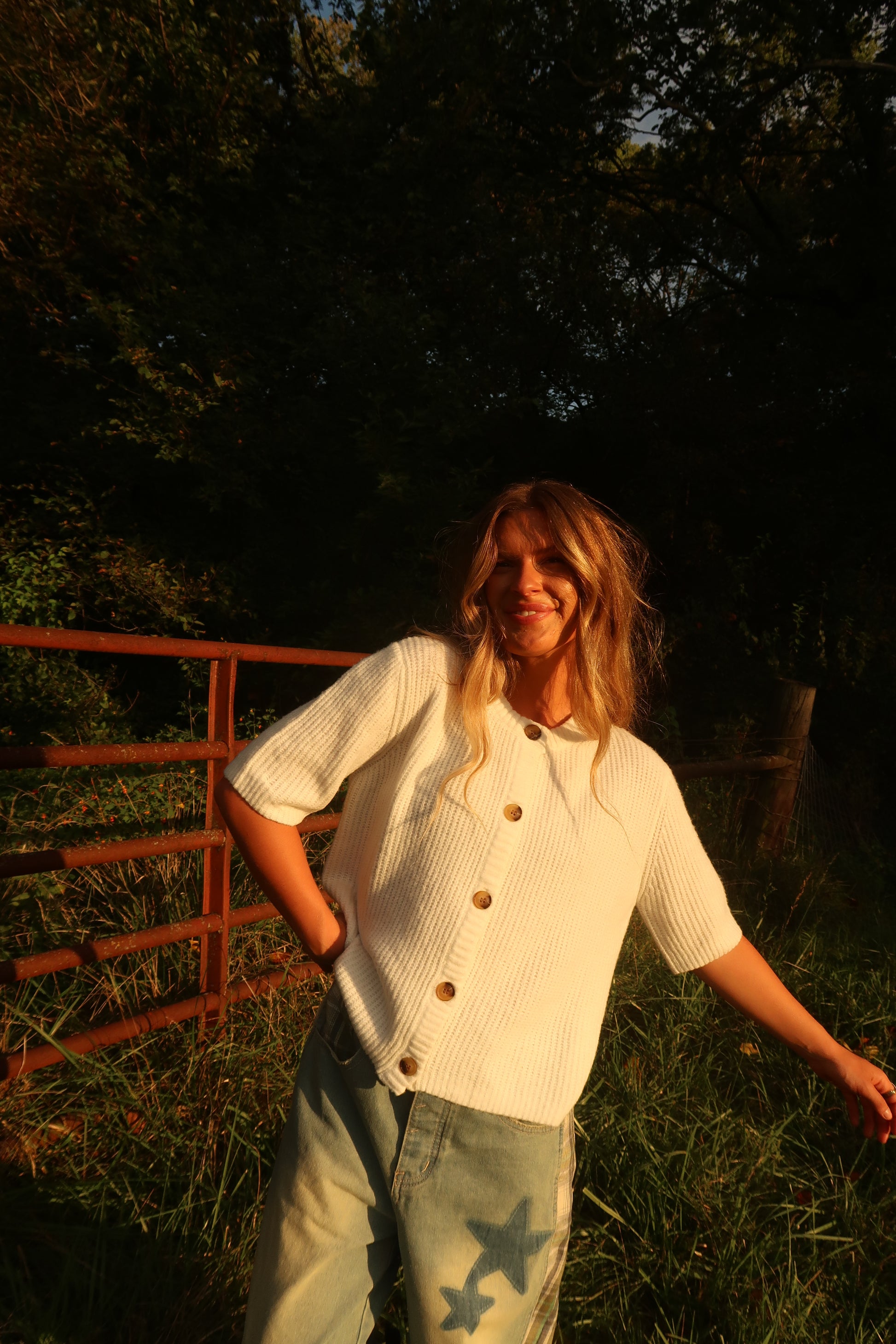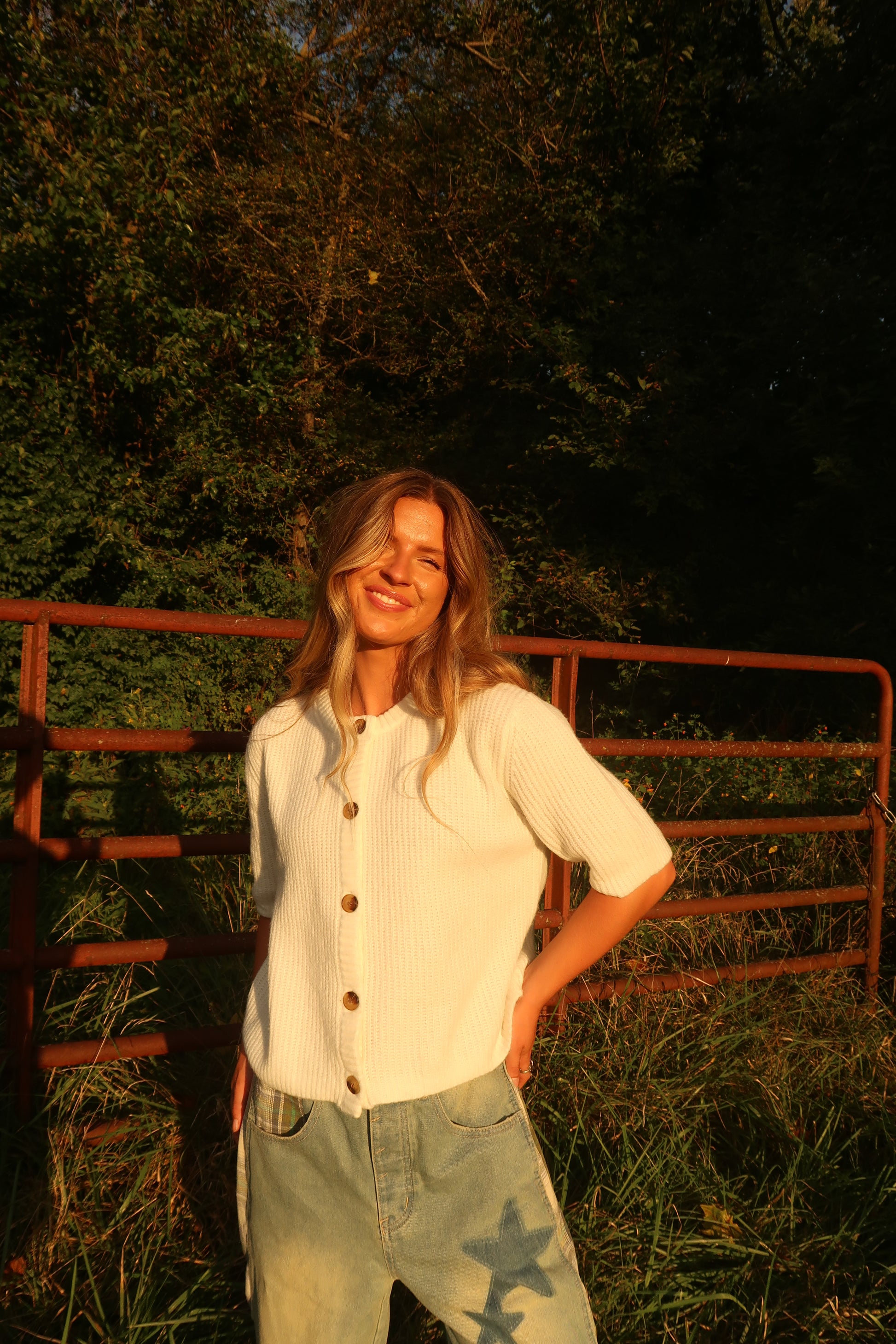 Stay snug and stylish with the mist Short Slv Cardi! This ultra-soft, cozy knit in a misty white hugs you with comfort, while charming brown buttons add a fun touch. Perfect for layering on cooler days or adding a pop of warmth to any outfit, it’s your new go-to cozy companion with a playful twist.
