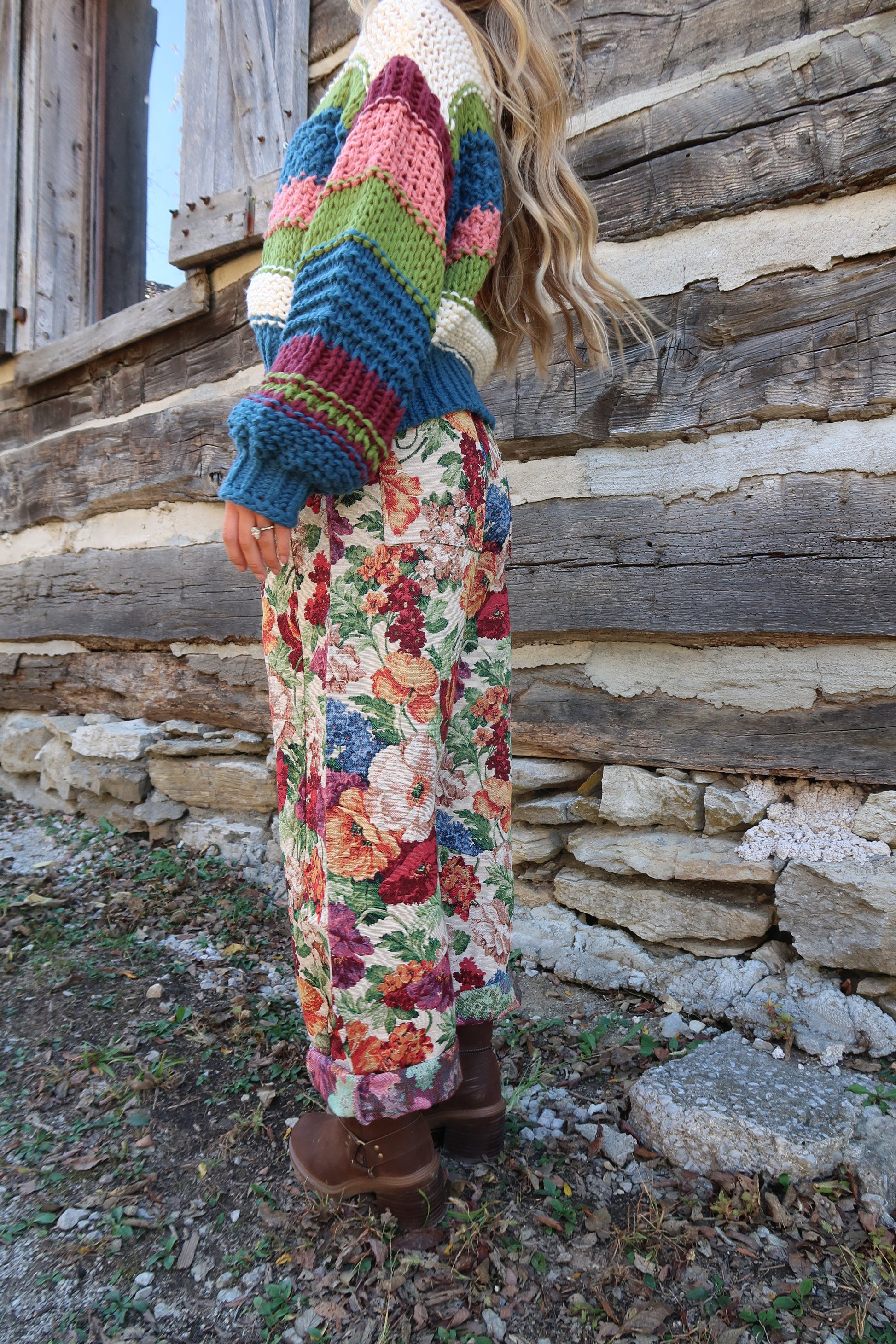 Step out in style with these bold floral barrel jeans that bring a funky, fun vibe to any outfit. Featuring bright, eye-catching colors and a classic zipper and button fly, they’re perfect for adding a playful twist to your wardrobe. Embrace your unique style and let these statement jeans do the talking!