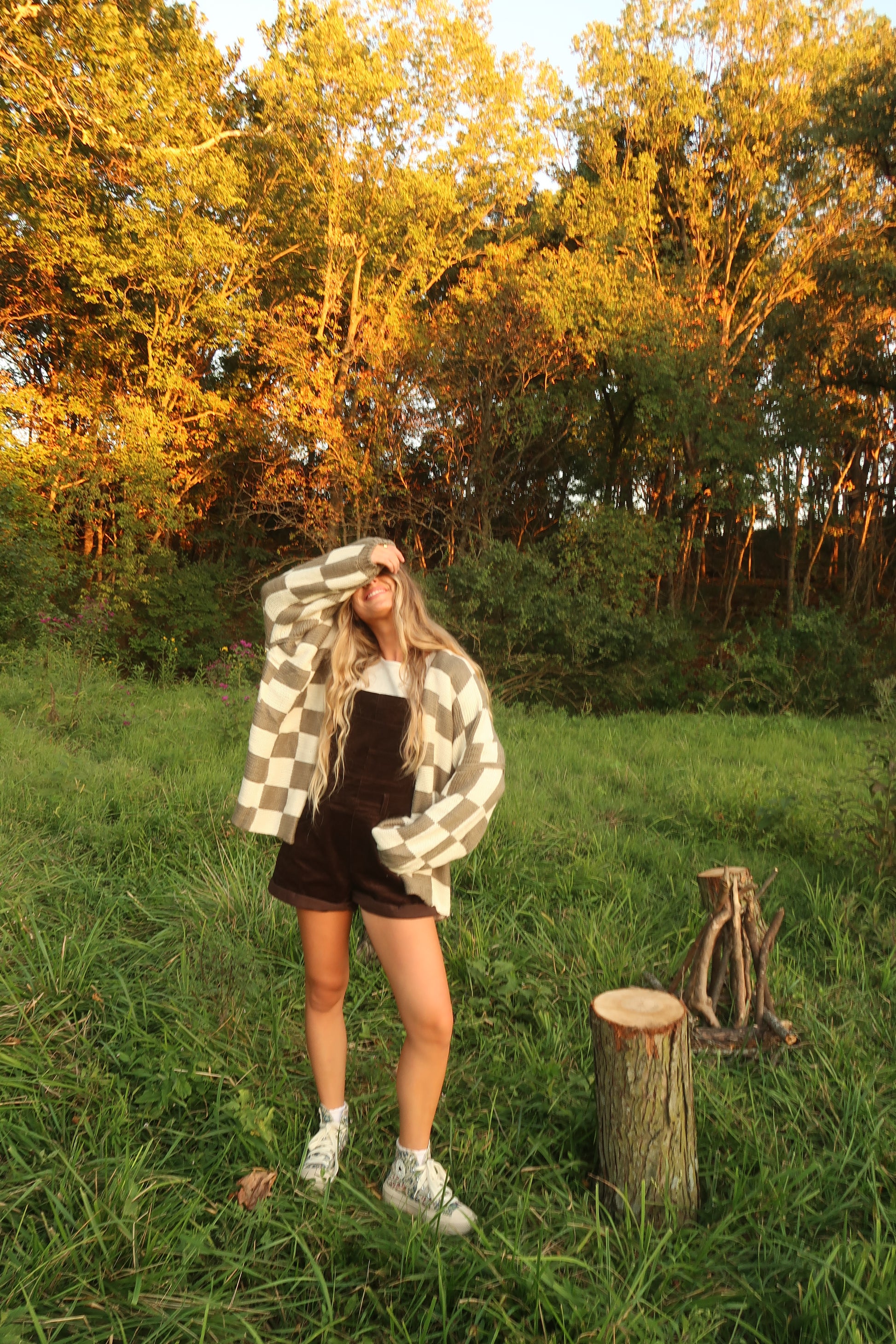 Get ready to cozy up in style with our green Check Cardigan! This oversized, slouchy cardigan features a charming olive green and cream checker print, perfect for adding some playful pattern to your wardrobe. Embrace the cozy vibes and stay warm and stylish all winter long.