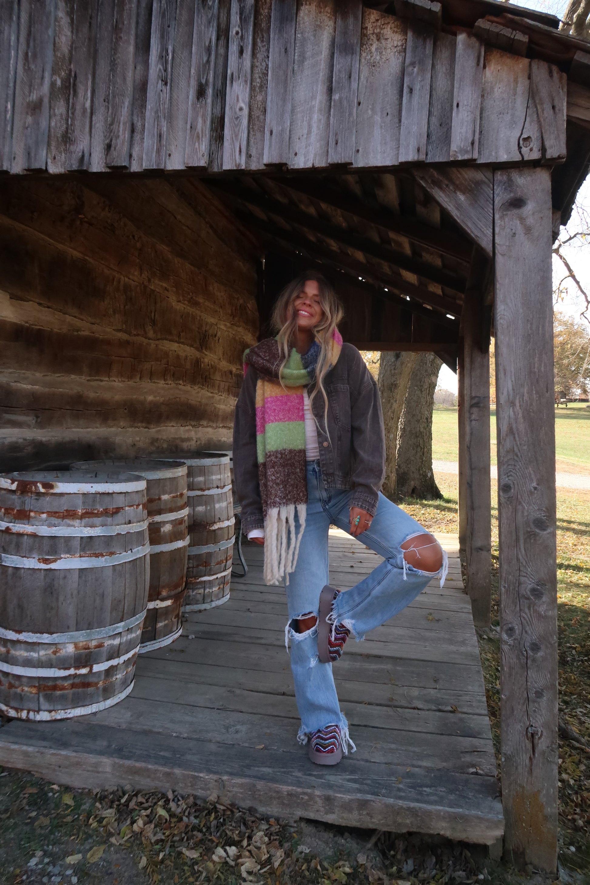 Wrap yourself in cozy comfort with our colorful stirpe blanket scarf. Perfect for adding a little extra to any outfit, this oversized scarf is unbelievably soft and will keep you warm all season long. Don't sacrifice style for warmth - get both with our must-have scarf!