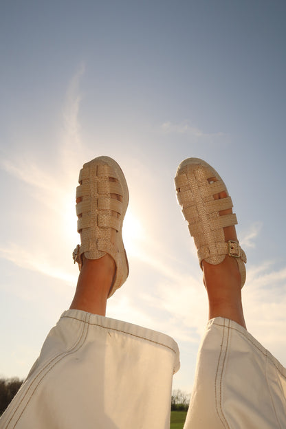 Take a walk on the wild side with our Rattan Fisherman Sandals. Featuring a coastal vibe with a fisherman style and a natural rattan material, these sandals will elevate any beach or summer look. Plus, with a platform design, you'll be comfortable and stylish with every step. Reel in the compliments with these quirky and playful sandals!