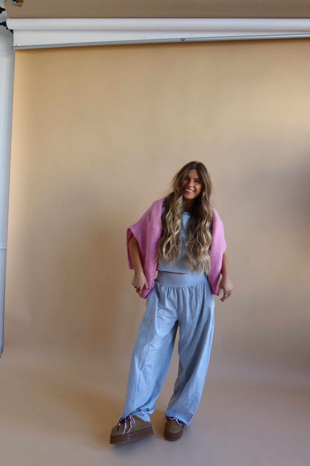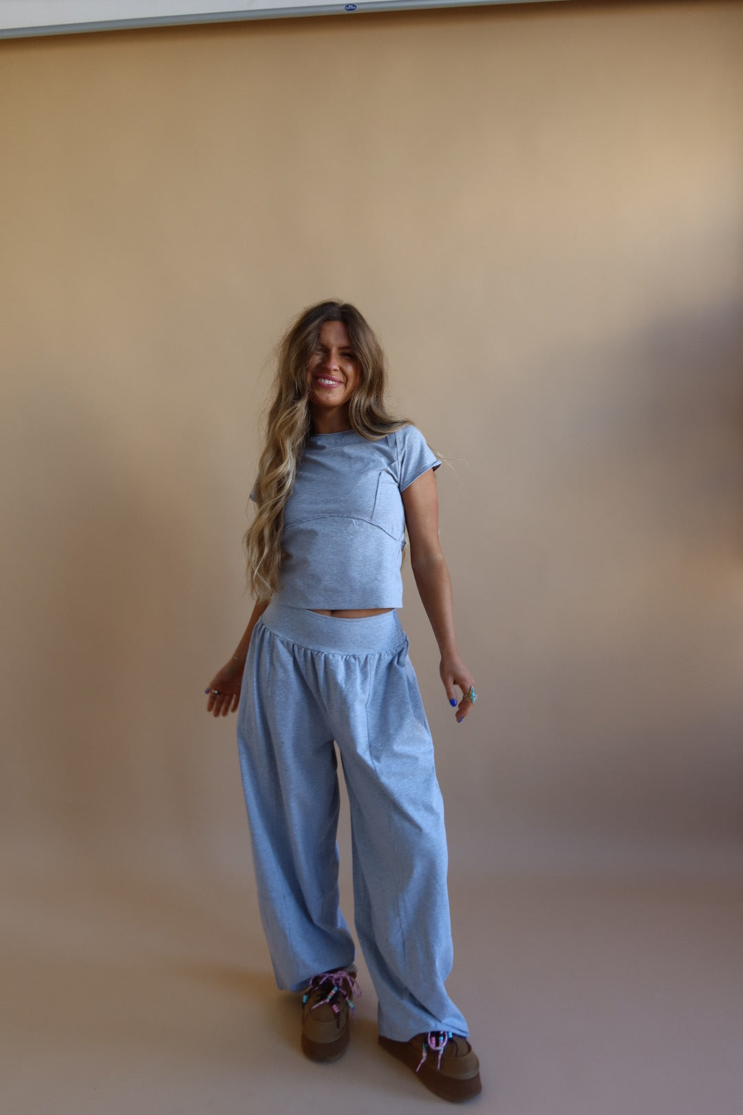 Elevate your casual style with our On the go Set! These mineral-washed heather barrel leg pants feature solid pockets and a comfy elastic waistband, paired perfectly with a flirty short-sleeve cropped top. The ultimate combo for looking put-together while feeling oh-so-relaxed – whether you're dashing through airports or lounging at home!
