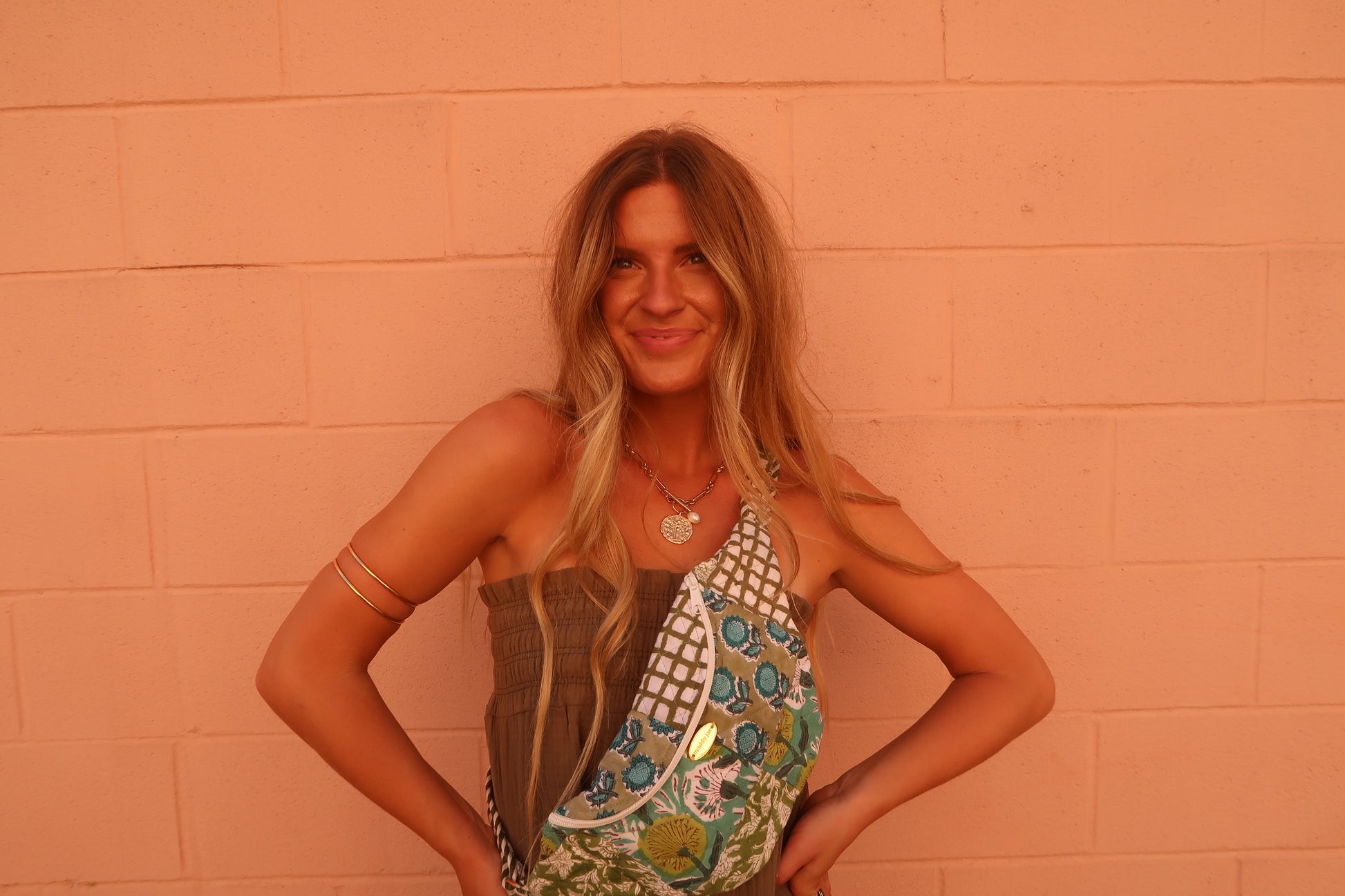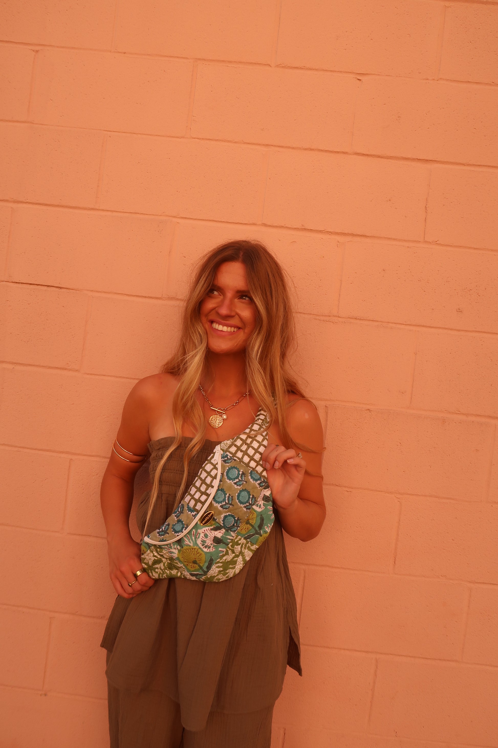 Introducing the Ronni Quilted Bumbag - the newest addition to our quilted club! This one-of-a-kind bag features green patchwork, brass accents, and an adjustable strap for ultimate comfort. With a zipper closure, your belongings will stay safe while you stand out in style. Just like you, this bumbag is truly unique!