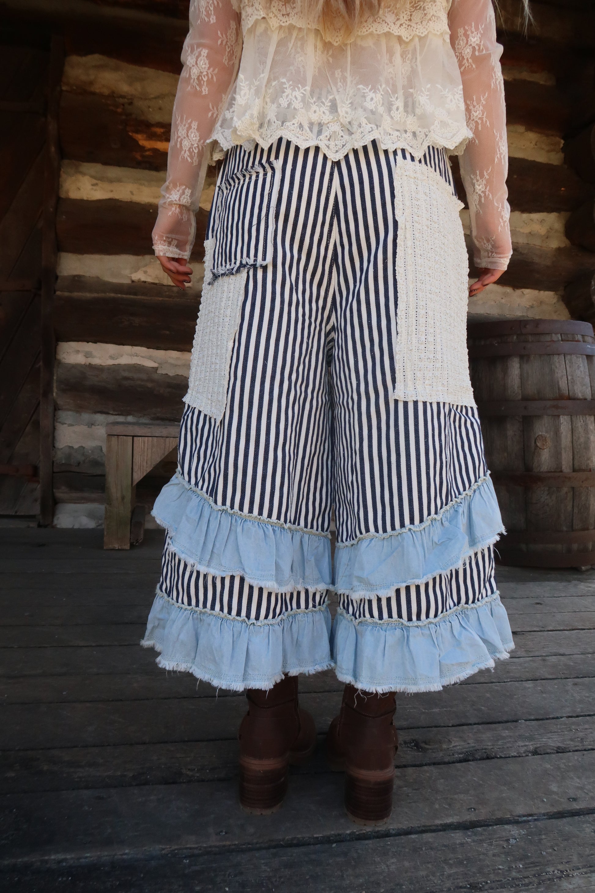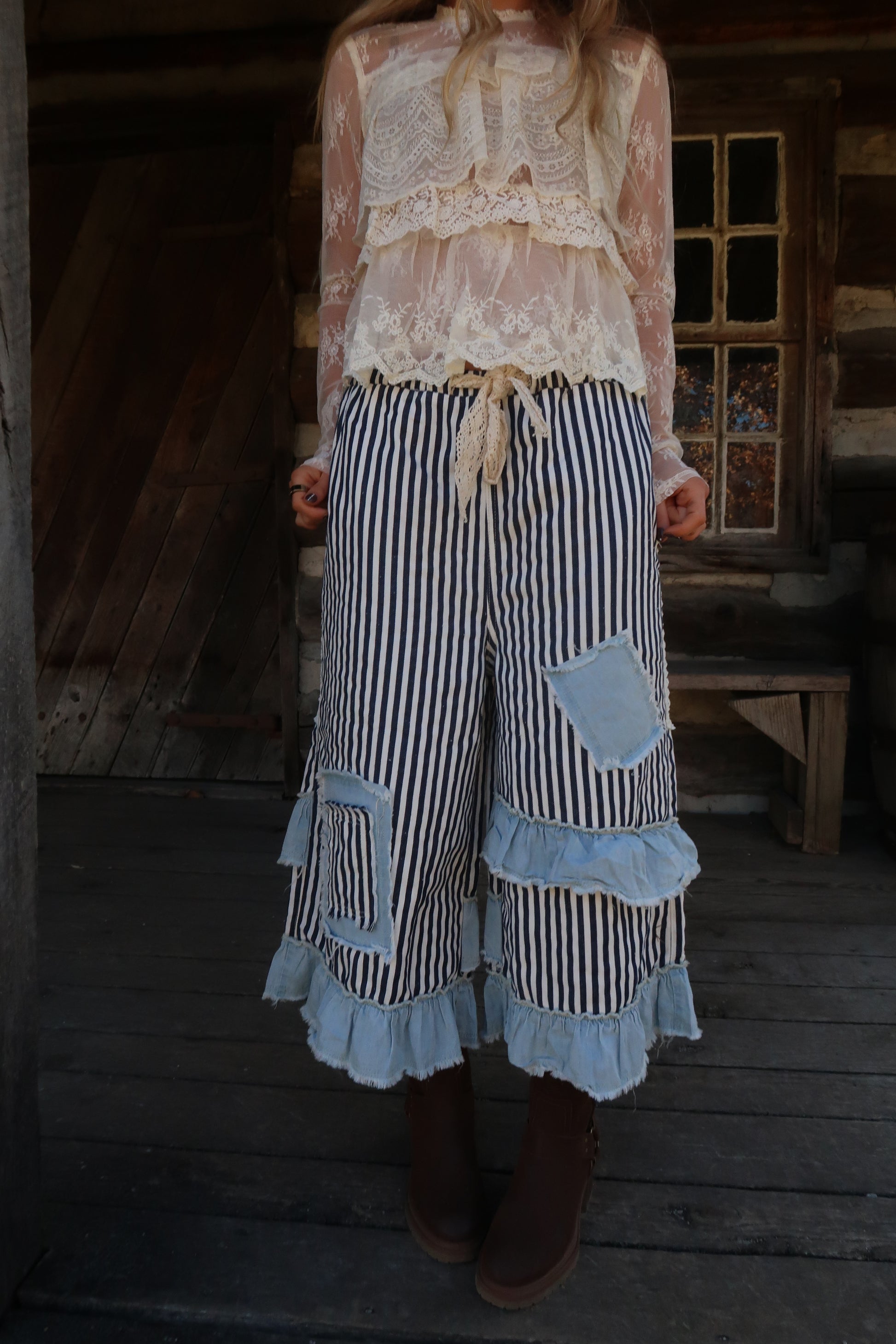 Stripes meet sass in these cropped pants that bring the fun factor to your everyday rotation. Featuring playful ruffled details and a flattering cropped silhouette, they're perfect for pairing with your favorite crop top or tucked-in tee. The striped pattern adds visual interest while the ruffles give you that extra touch of personality. Comfortable enough for all-day wear, bold enough to make a statement.