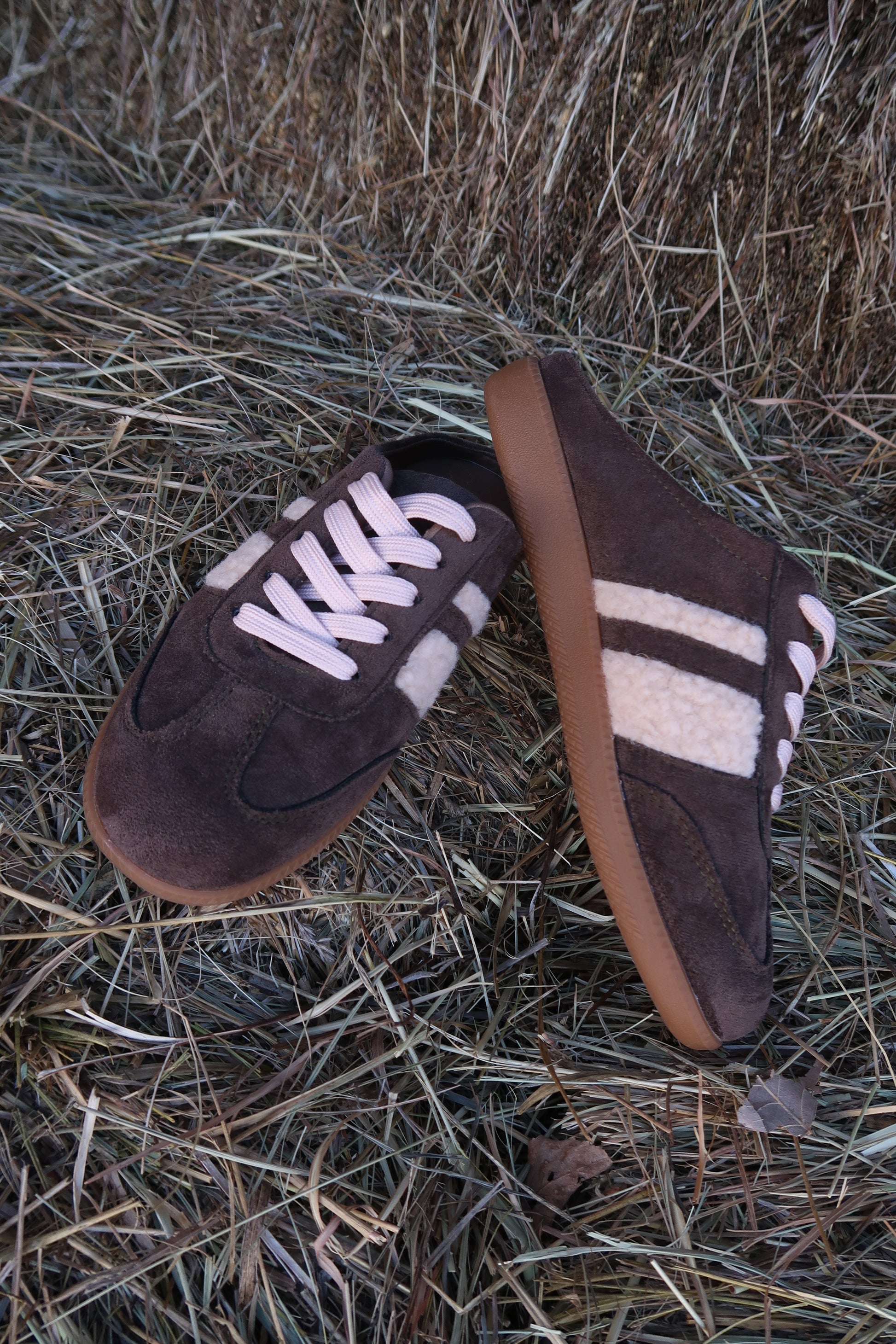Step into effortless style with the Swayze Slide Sneaker—where comfort meets cool. These brown sneaker mules feature a cream sherpa stripe that adds just the right pop of contrast. Perfect for those days when you want to look put-together without the fuss, they're your go-to for running errands, casual hangouts, or just lounging at home. Slip them on and feel the difference that quality comfort can make.