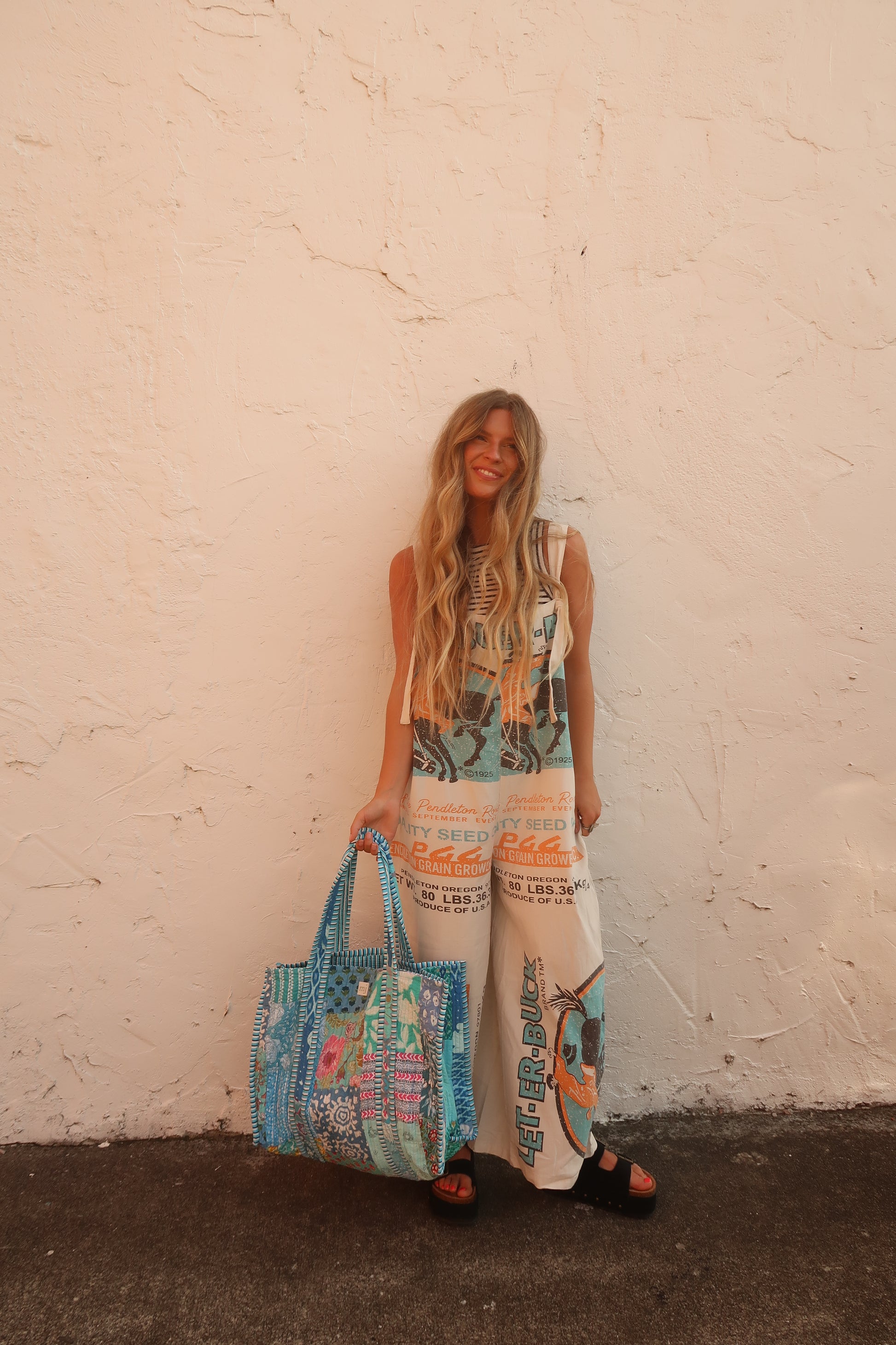 Step into charm with these vintage flour sack overalls, designed for an oversized, comfy fit that adjusts to you. The jaw-dropping teal and orange color combo makes every outfit pop with a unique, one-of-a-kind flair. Perfect for anyone who loves to stand out effortlessly!